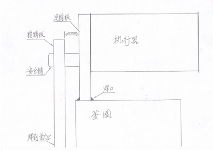 2.3.1.測(cè)量容器殼體齒圈的內(nèi)齒面距密封面距離的1/2處到釜體斷面的實(shí)際尺寸,在齒圈外壁上畫安全銷縱中心線。